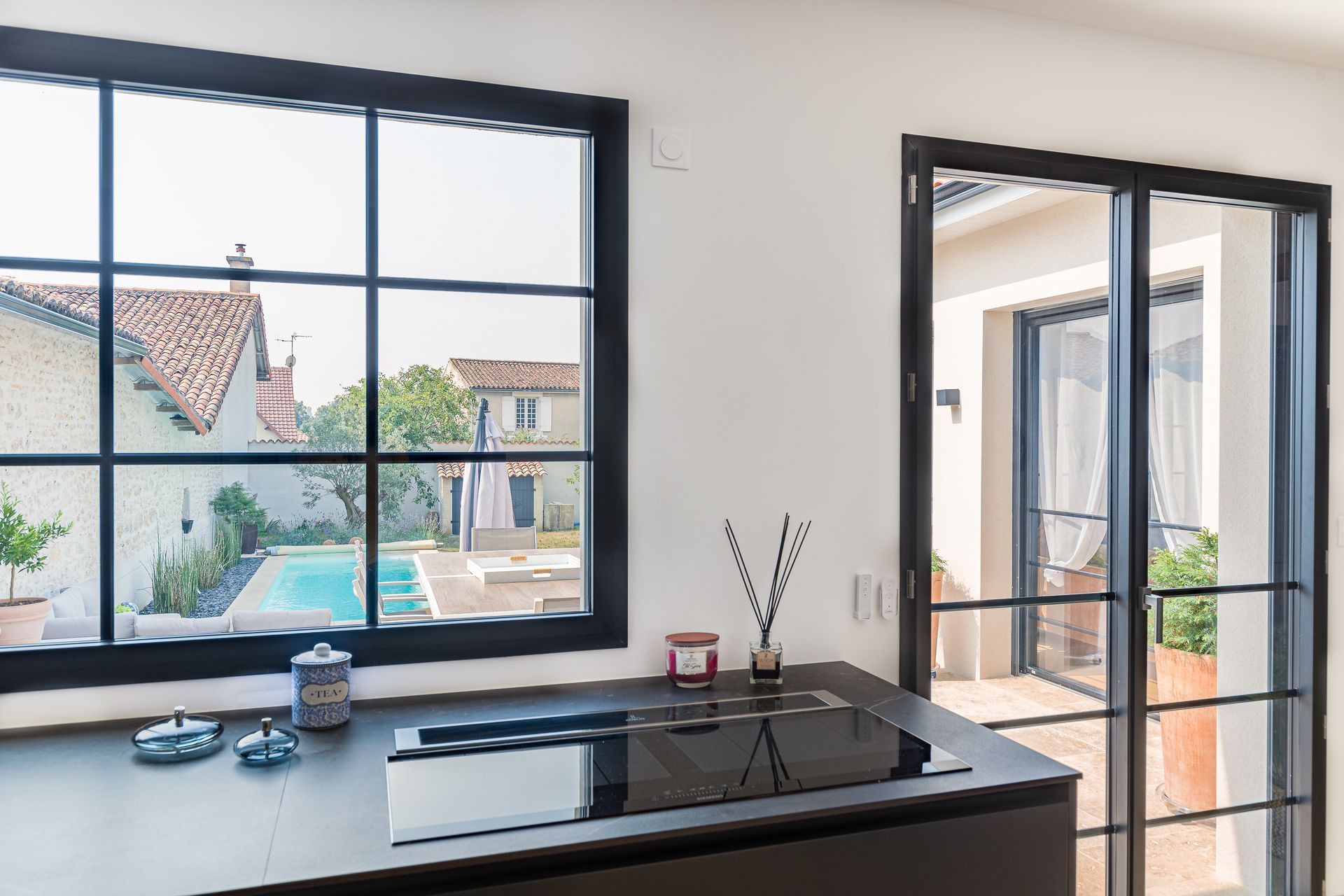 Les menuiseries qui vous permettent d'avoir le maximum de clair de jour car les montants sont très fins et surtout avec la même isolation qu'une menuiserie PVC ( ouvrant ).