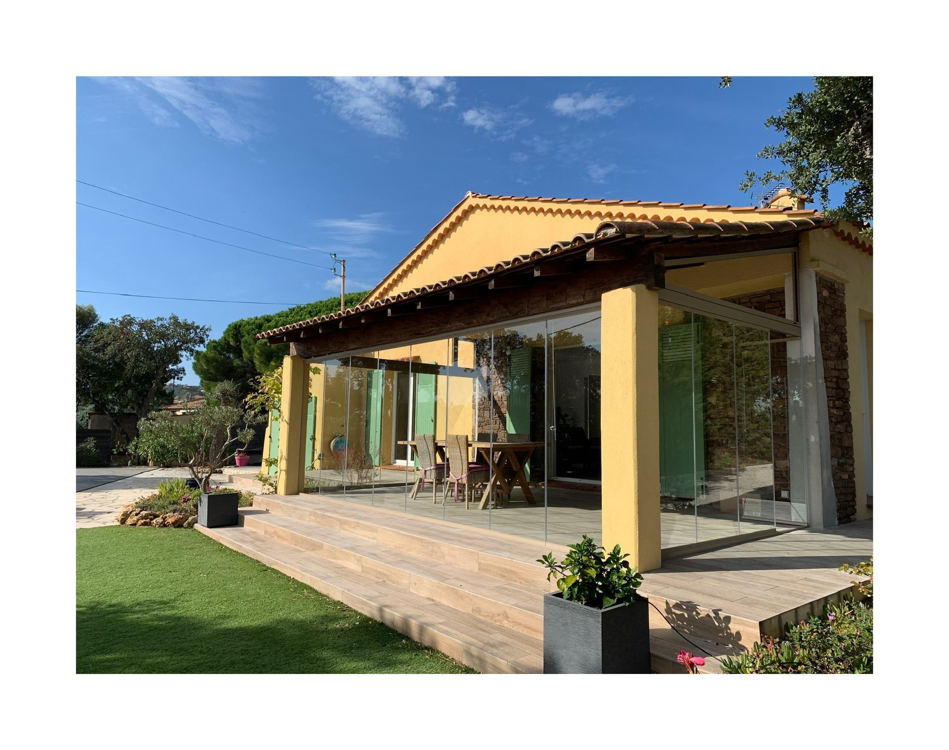 Panneaux de verre coulissants ou coulissants pivotants, ce type de fermeture vous protègera du vent et de la pluie avec l'avantage de ne pas avoir de montants verticaux.
